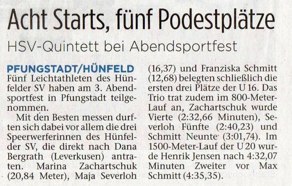 Der Rhön-Super-Cup ging am heutigen Samstag in seine diesjährig vorletzte Runde. Beim Mini- und SJS-Cup waren wieder einige Athleten des Hünfelder SV mit am Start. Und die lieferten – fast schon gewohnt – starke Ergebnisse ab. Die Ergebnisse im Einzelnen: SJS-Cup (4,5 km): 1.MJ U20 und Gesamterster; Henrik Jensen (15:58,2) 2.MJ U20 und Gesamtzweiter; Max […]