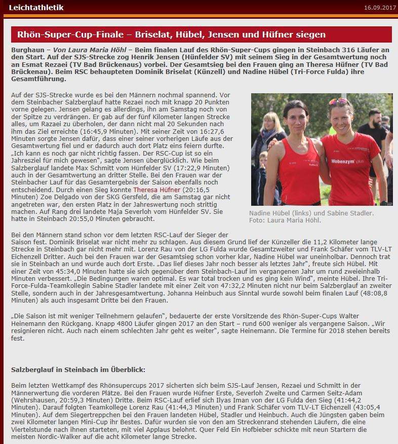 Beim SJS-Cup im Rahmen des Rhön-Super-Cup-2017 erzielten die Hünfelder Leichtathleten hervorragende Platzierungen. Die Gesamtwertungen im Einzelnen: